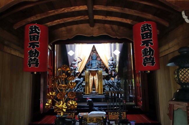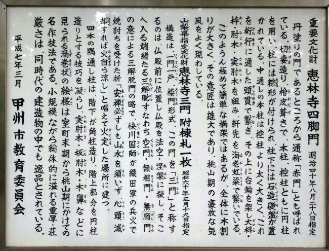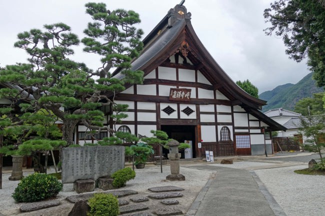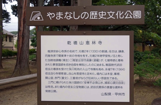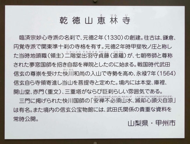 宿の近くに有名がお寺があるので行ってみました。武田信玄が埋葬されているお寺で、長い山門が続きます。