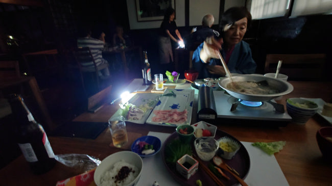 宿の方もそれを予感していたのか食卓に電灯が用意されておりました。