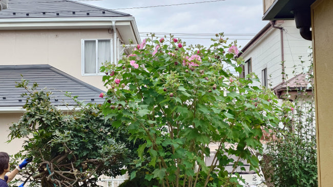 芙蓉の花は1日しか持ちませんがたくさんの蕾を付けています。 |