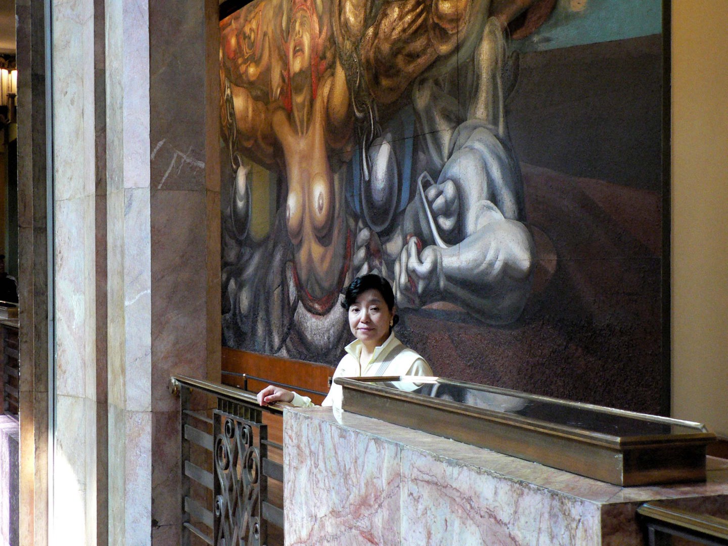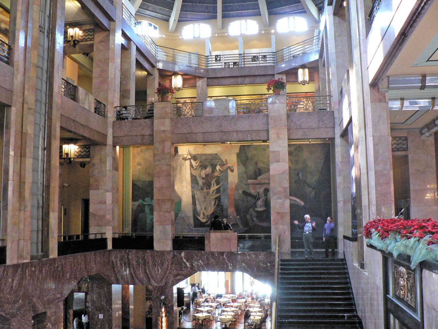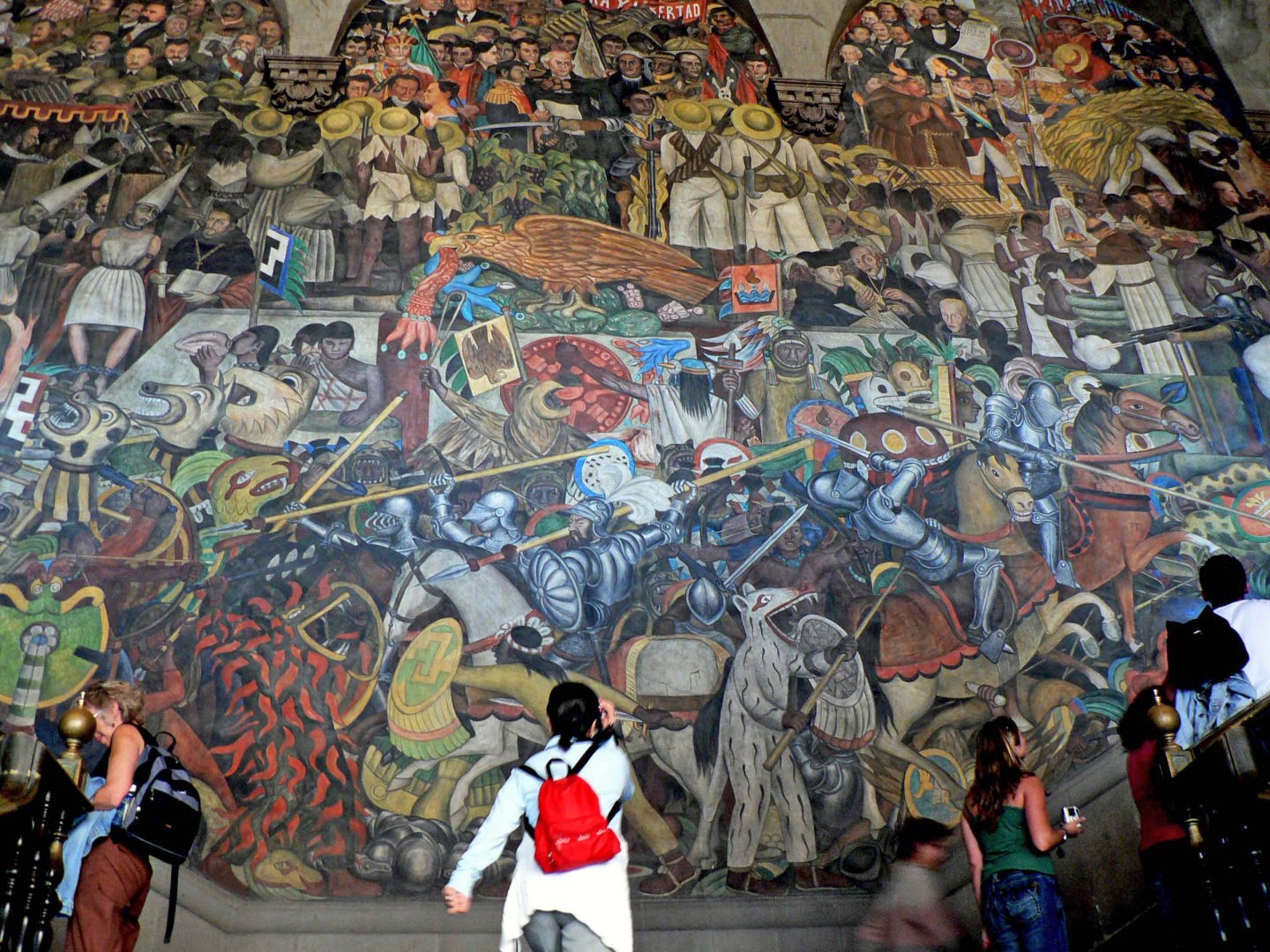 その中には、国民的画家ディエゴ・リベラが、アステカ時代から現代メキシコまでを描いた巨大で雄大な壁画があり、リベラの最高傑作と言われています。