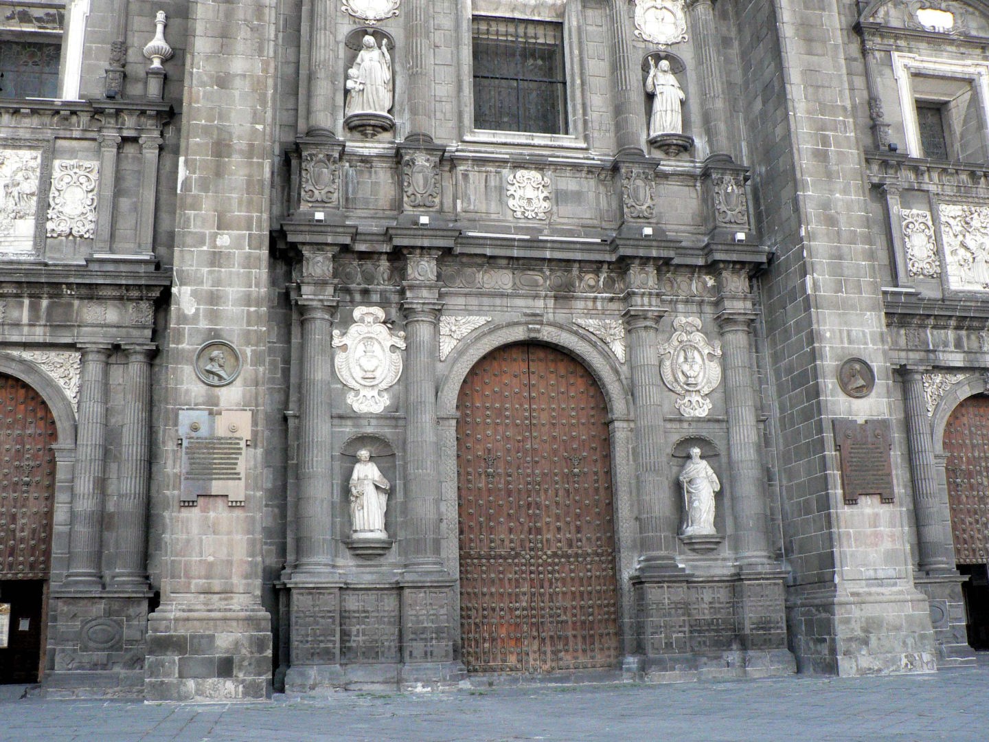 | ソカロの北側にあるメトロポリタン・カテドラルはメキシコにあるすべての教会を統括する大教会で、ラテンアメリカ最大級の建築物です。100年以上の歳月を掛け、1681年に完成しています。ヨーロッパ建築様式の大聖堂です。 |