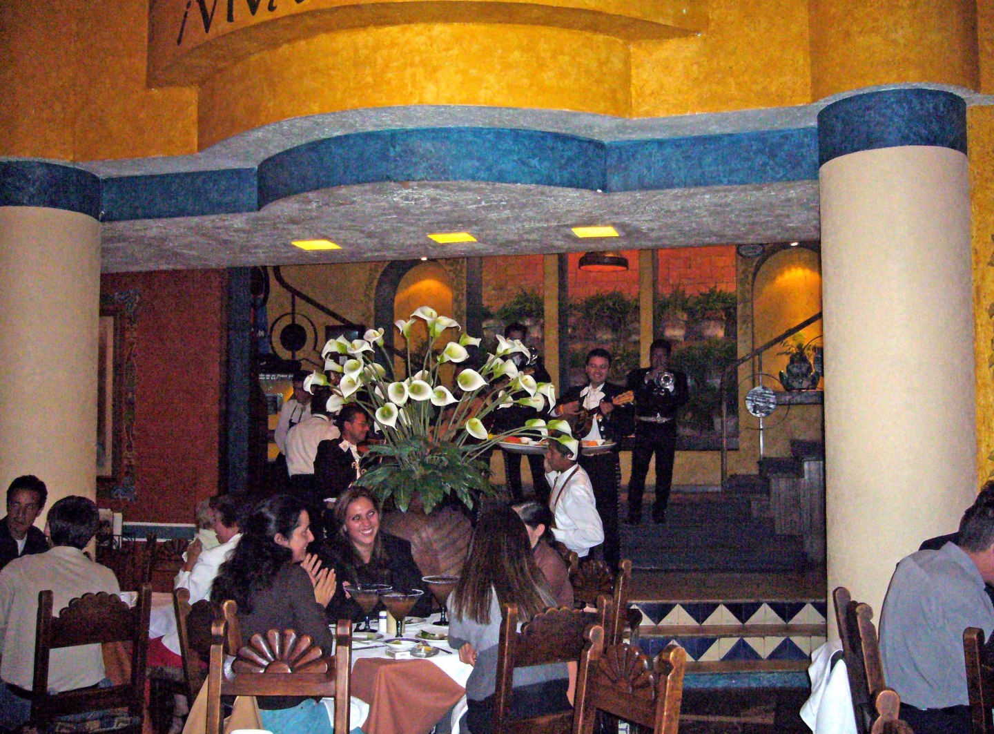 夜、メキシコでは有名な高級レストランへ出かけ、マリアッチを聞きながらの食事でした。