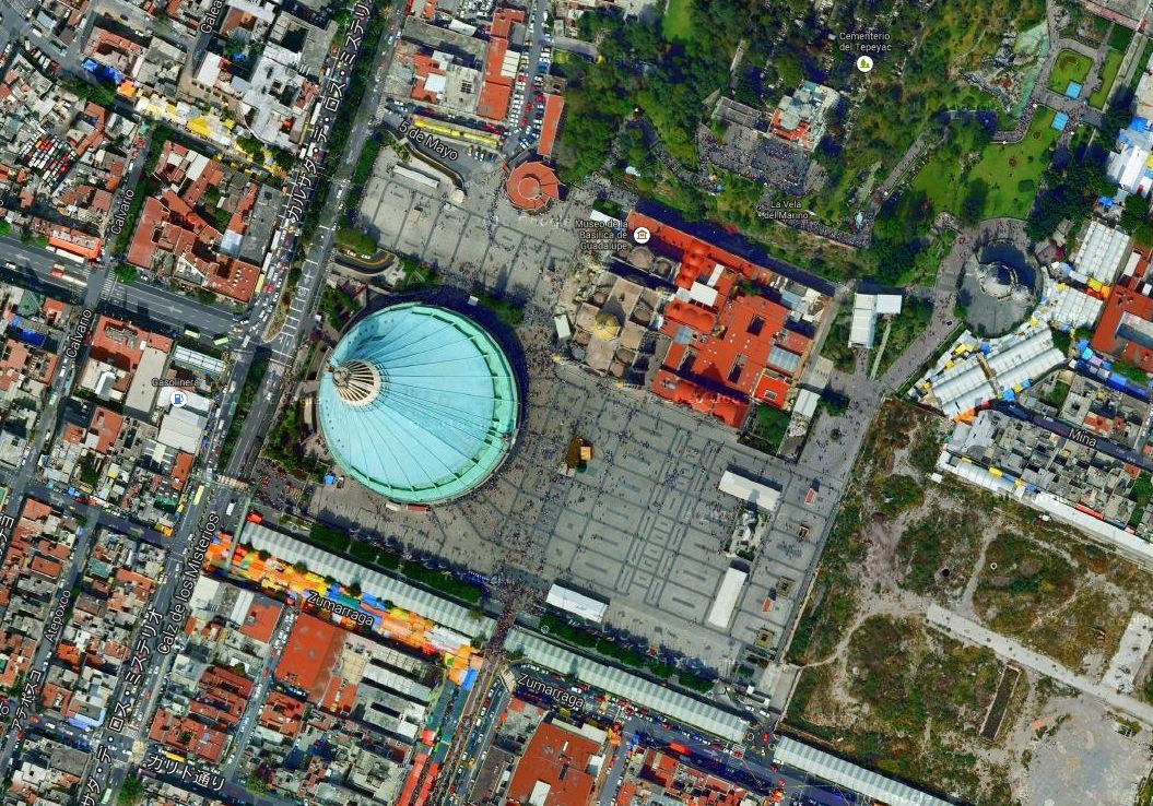 帰りに、市内北部にあるグアダルーペ寺院を見学しました。 カトリック3大奇跡の一つである 「グアダルーペ聖母の奇跡」 の中に現れる褐色の聖母が祀られており、ラテンアメリカのカトリック信者の聖地とされています。 グアダルーペ聖母の軌跡とは、スペインがアステカ帝国を滅ぼした10年後の1531年、光り輝く褐色の聖母が先住民の前に現れ、この地に教会堂を建てるようにお告げがあり、先住民はそれをスペイン人の司祭に伝え、司祭は新大陸にも守護聖母が現れたとその奇跡を喜び、聖母を祀った寺院を建立したことによります。 |