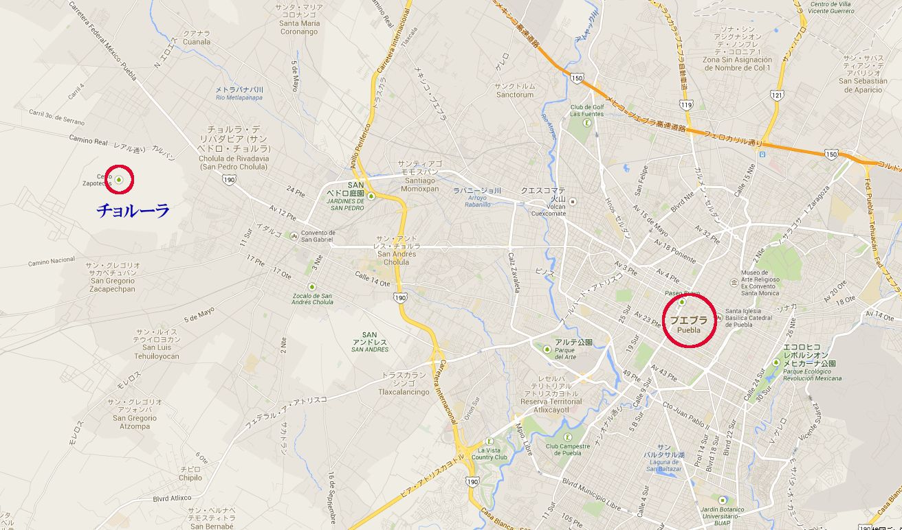 チョルーラはプエブラから西へ約10km行ったところにあります。 |