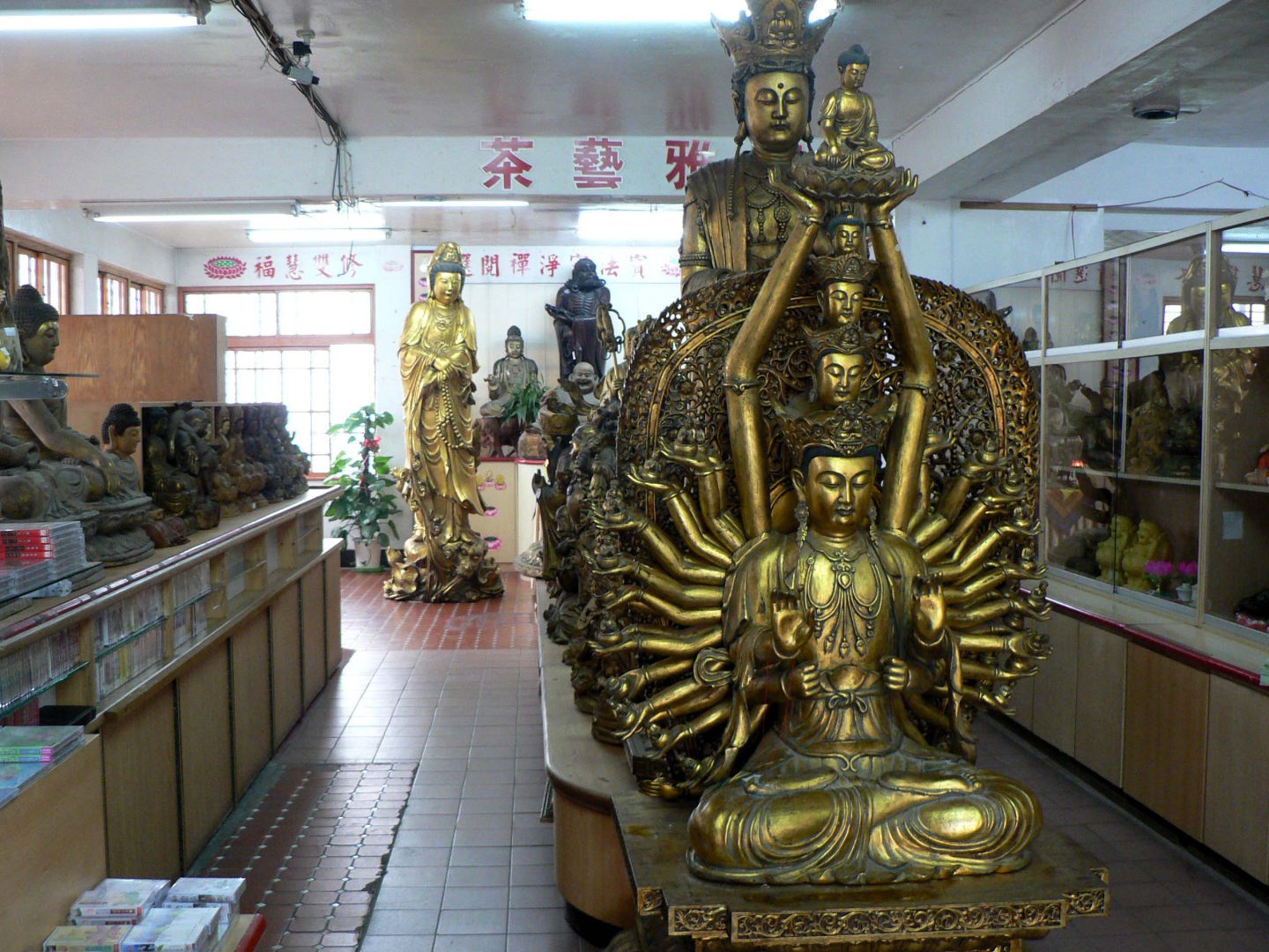 基隆港近くの丘の上に作られ、観音様の両脇には狛犬がいます。土産屋もありました。