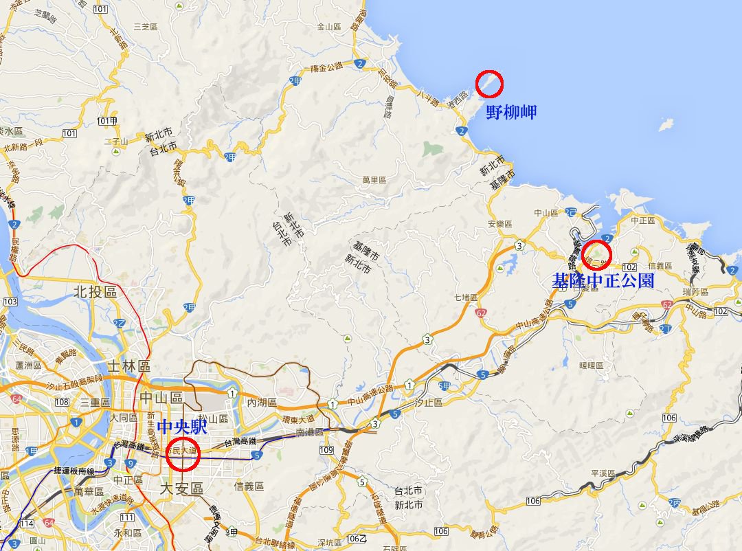 台北のホテルから基隆中正公園まで、約40分、そこから野柳岬まで約20分でした。 |