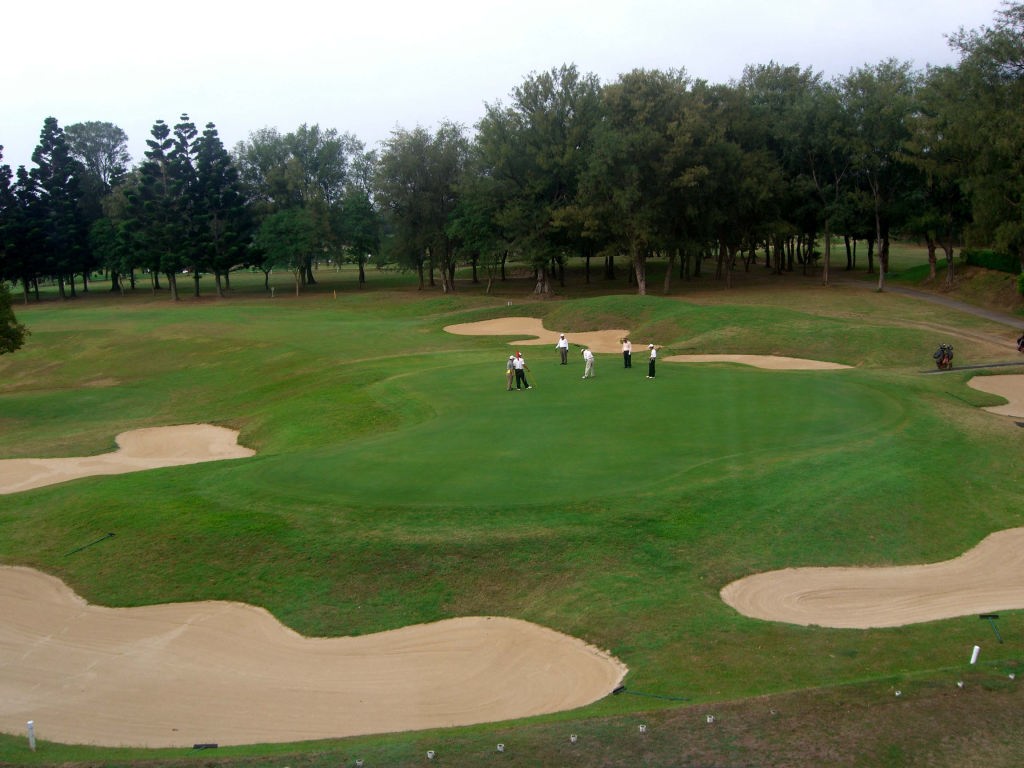 | 同じ年の11月、台北を訪問する機会があり、台湾の名門、淡水ゴルフクラブでプレーをする機会がありました。スコアーは散々でしたが、土曜日にも拘わらず、大変空いておりました。キャディは男性で1組に2名付きます。フェアウエイやグリーはどちらかと言うと、日本のパブリックコース並みで、芝には雑草がたくさん混じっていました。 |