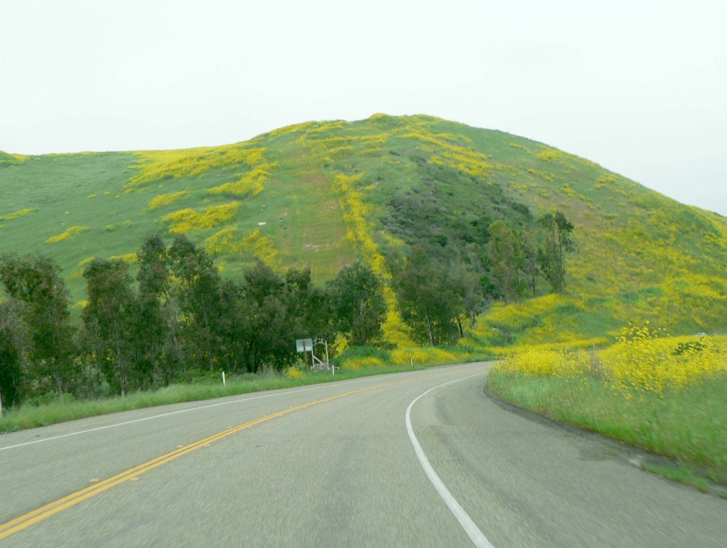 4月28日 西海岸を北上し、サンタバーバラから King Cityへ お花畑の美しい道路が続きます。 道路脇には、いろいろな花が咲いていました。