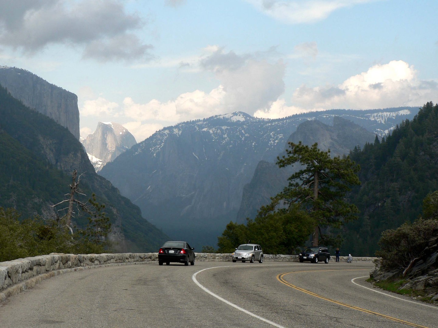 ロンバートストリート ベイブリッジを通り、ヨセミテ公園へ 南口から入る トンネルビュー トンネルを出ると、しばらくして素晴らしい景色が広がります。 道路脇に駐車場がありました。 ヨセミテの絶景
