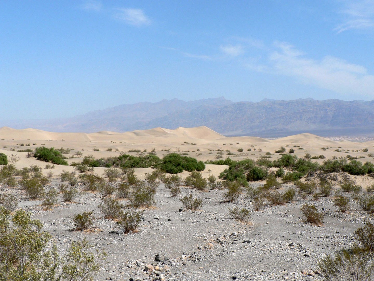 Lone Pine から Stove Pipe Wells へ向かう 砂丘 砂漠の中には、時々、砂丘が現れます。 Death Vally Musium (Furnace Creek)