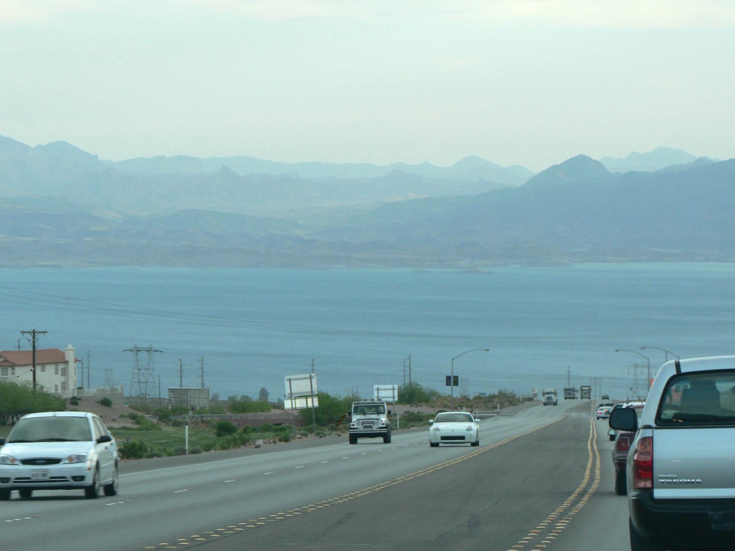 ラスベガスを出発 Hoover Dam 発電所 コロラド川に作られた発電所がありダムで大きなミード湖が出来ています。 途中の風景です。