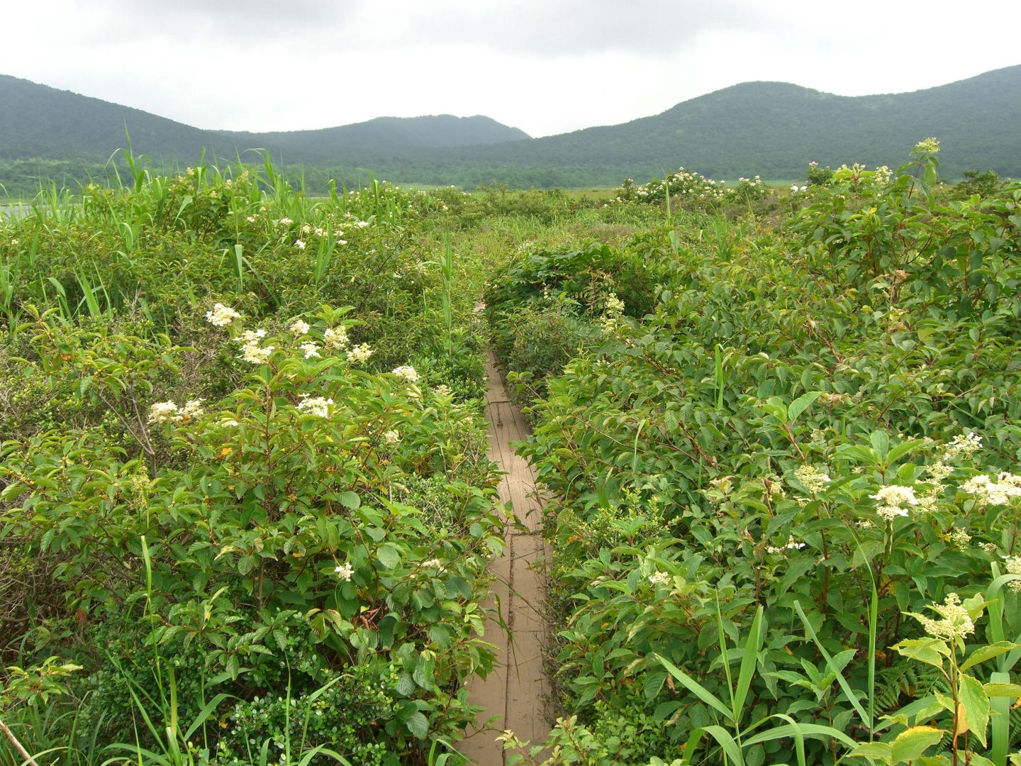 | 雄国沼は標高1000mと高いところにあり、湿原には、いろいろな花が咲きみだれる人気のあるハイキングコースです。一車線の狭い道路を車で登ると金沢峠にでます。そこから歩いて下って行くと約30分程度に沼に到着します。素晴らしい景色の湿原と沼でした。 |