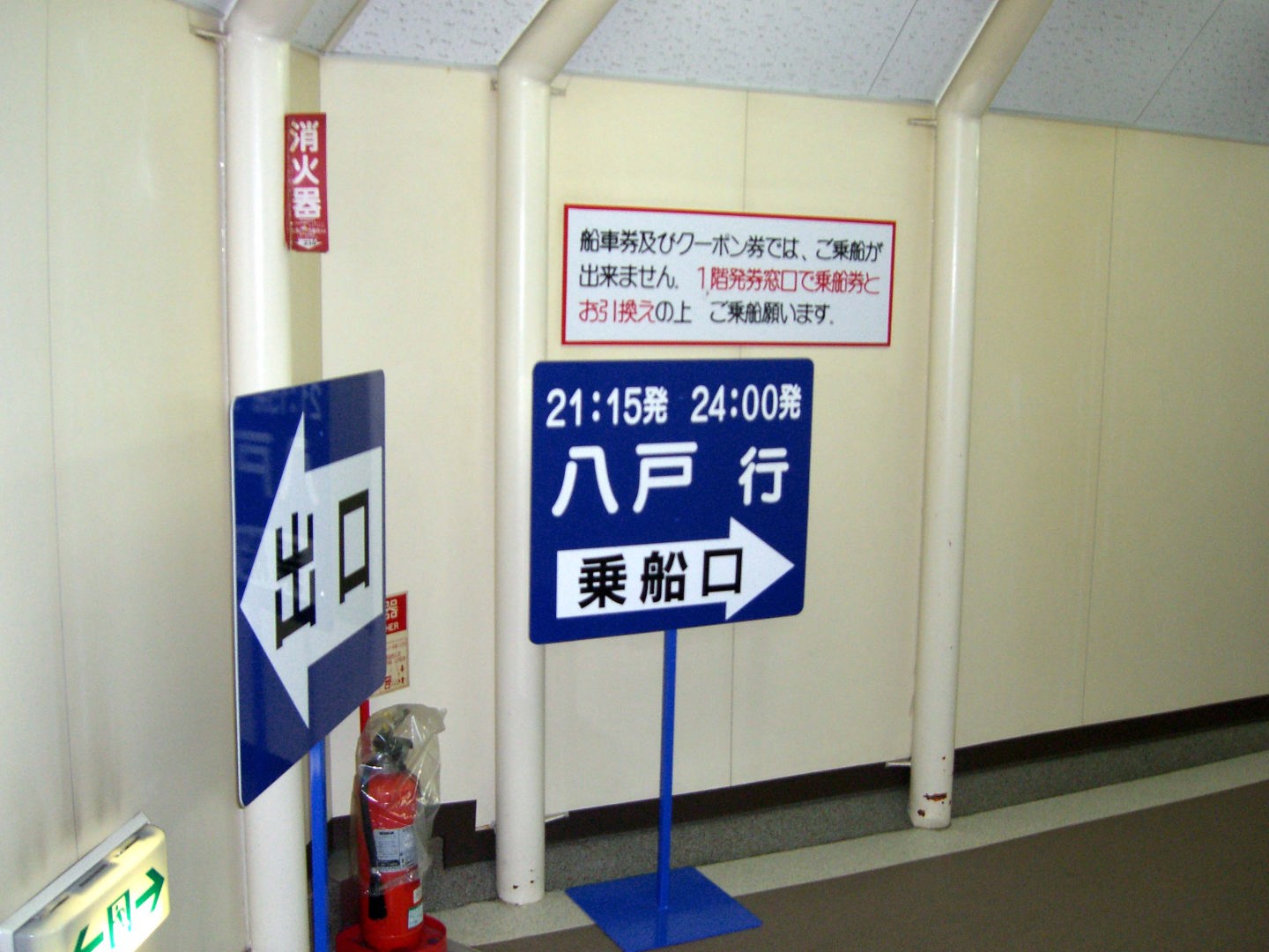 苫小牧-八戸間の乗船時間は8時間で、ちょうど午前0時に出港し、八戸到着は午前8時でした。