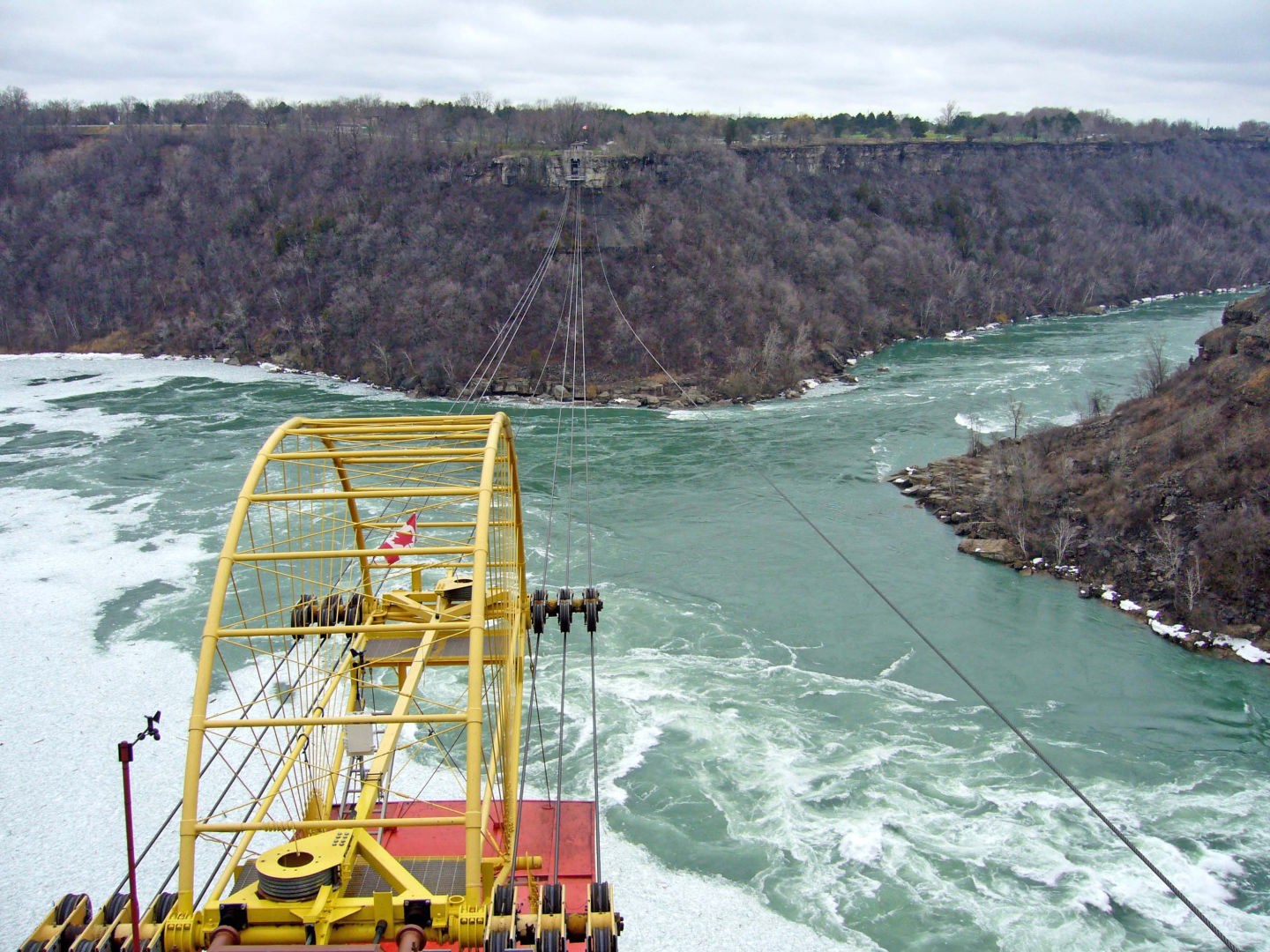 ケーブルカーはカナダ側同士の丘を結んでいます。 |