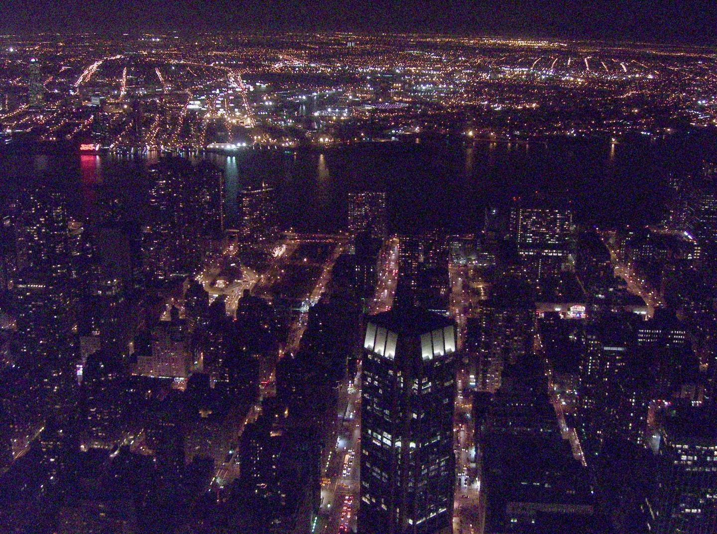 ただ、エンパイアーステートビルの登るのには、切符の購入、手荷物検査などがあり、ものすごく混んでいて、エレベーターに乗るまで約1時間20分ぐらいかかりました。ただただ、辛抱のみですが、日本での美術館も最近はものすごく混むことがあり、こんなものでしょう。並んだときはまだ明るかったのですが、展望台に到着したときはもう、真っ暗でした。夜景が綺麗でした。展望台には窓ガラスがなく、直接外気に触れながら見渡せるのには感激です。