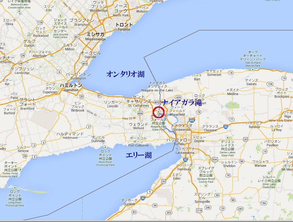 エリー湖の水面標高は174mで、オンタリオ湖は75mであるため、二つの湖の標高差は100mもあります。その二つの湖は狭い川で結ばれ、途中にあるナイアガラの滝の落差は最大53mもあります。 |