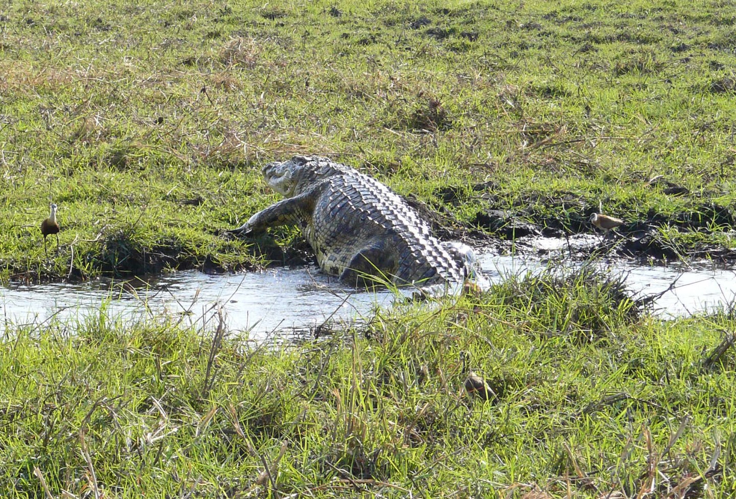 ビクトリアの滝からザンベジ川を上流に向かい、さらにチョベ川を上流に向い合計、約70kmぐらい行った所にチョベ国立公園があります。我々はホテルから小型車に乗りボツワナに入国します。そこにKasane