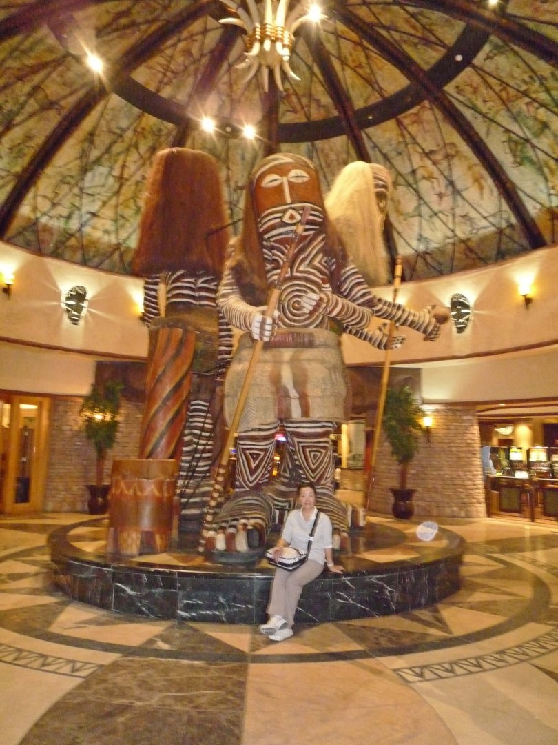 | ホテルはヨハネスブルグ空港のすぐそばの何か、日本のお台場のような雰囲気のホテルで、広いアミューズメントセンターがホテルと通路でつながっていました。今夜はそこで中華料理でした。 |