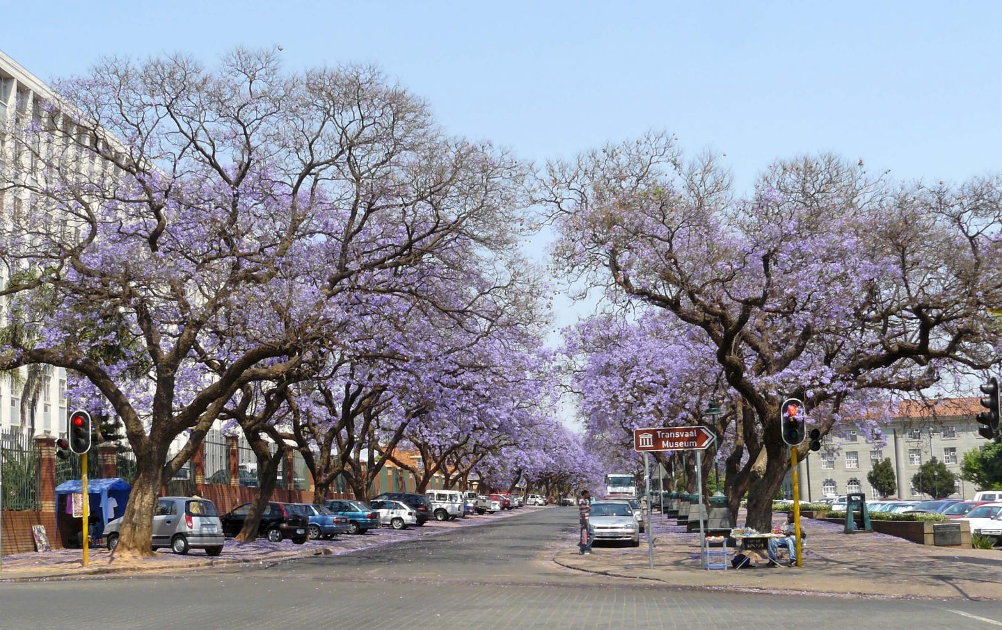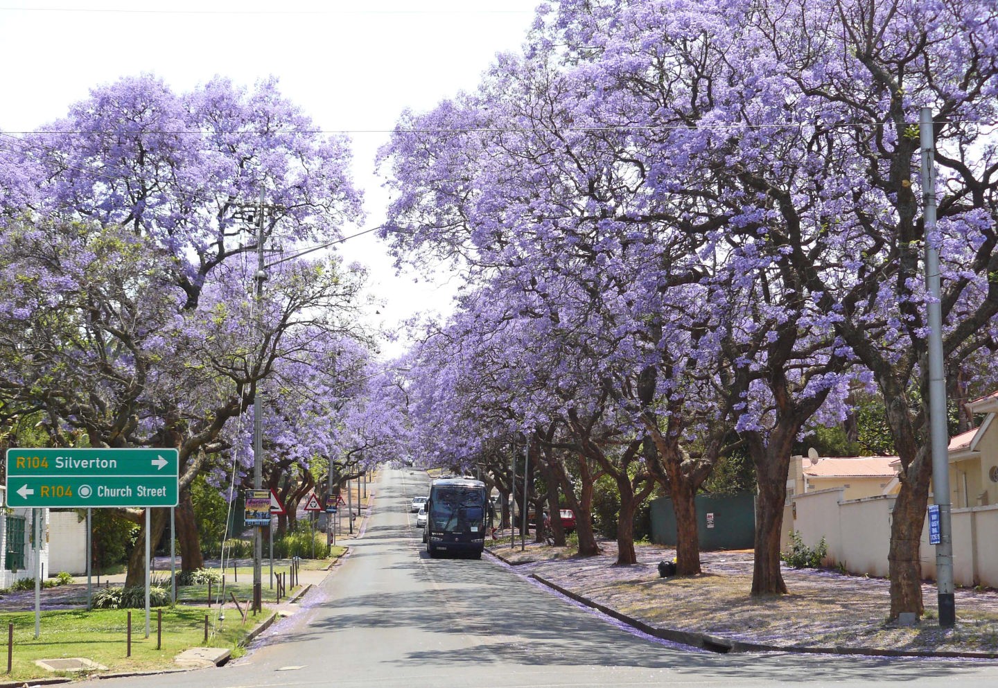 プレトリアはヨハネスブルグの北55kmに位置し、車で約1時間でした。そこまで行く高速道路からは至る所にジャカランダの花が見えます。素晴らしい風景です。