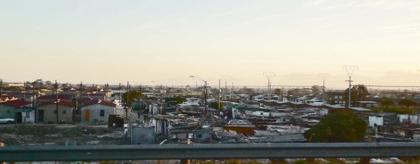 | ケープタウンに無事到着です。空港を出ると、ここも黒人たちのタウンシップが続いています。ワールドサッカー開催時までには、空港周辺だけでも何とかしたいと思っているそうです。2年後はどうなっているのでしょうか。 |