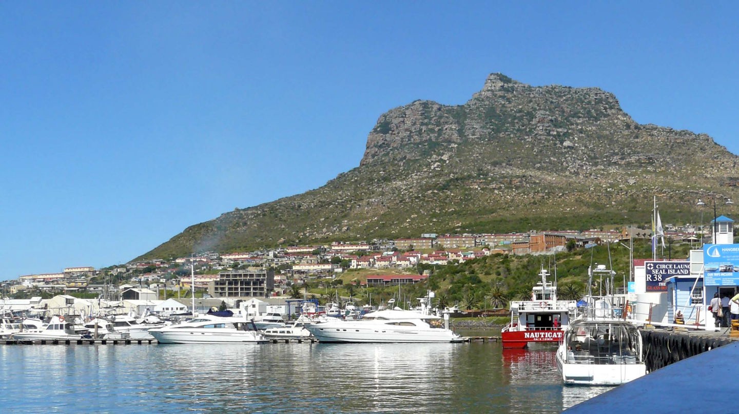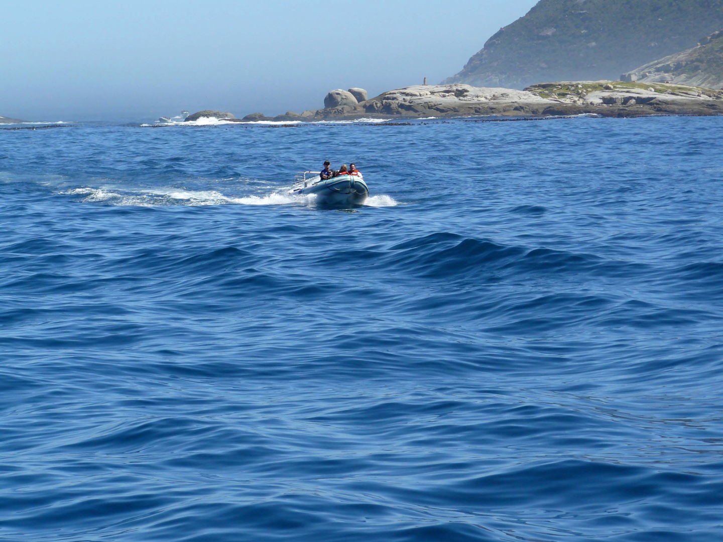 | 喜望峰へ向かう途中、フォルス湾の海岸を通りますが、この湾にはよくクジラが来るそうです。写真に収めましたが、はたしてクジラかどうか判断できませんでした。 |