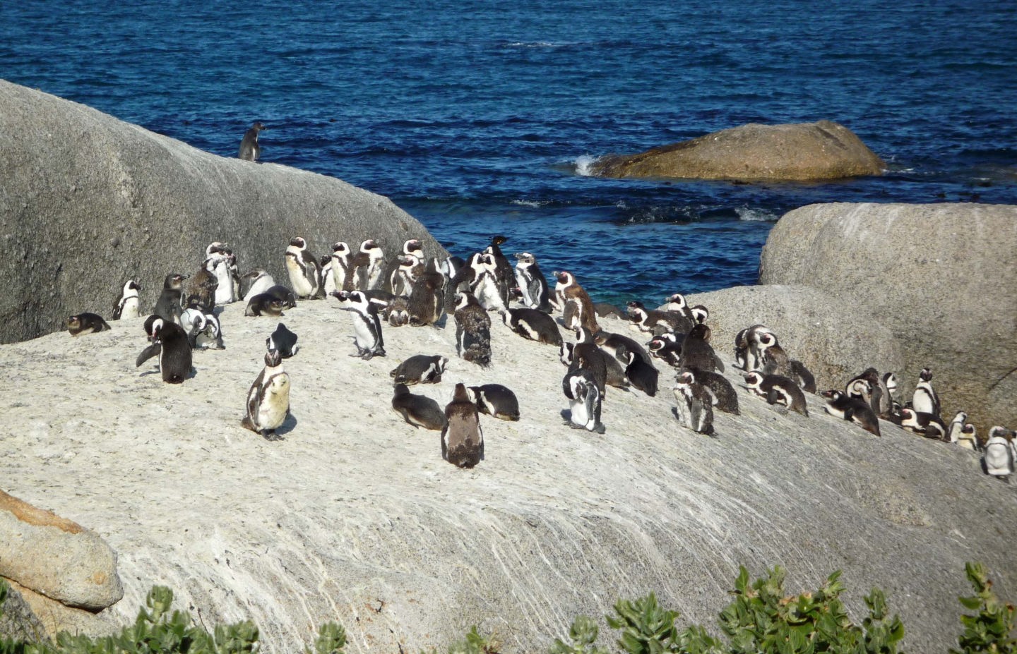 テーブルマウンテンの山裾にあり、山の向こうが我々のホテルのある場所で、そこは朝から本格的な曇りでした。ところが、山の反対側のこちらは晴天でした。テーブルマウンテンの上は雲で覆われ、今日は登っても何も見えないかもしれません。今回は幸運なツアーでした。