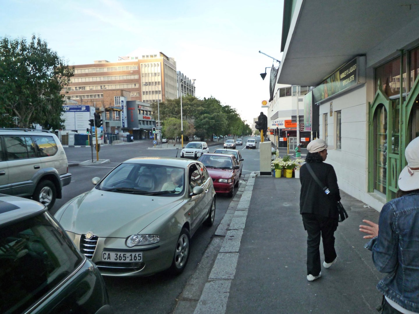 高速道路から市内を見下ろすと、街路には人がほとんど歩いていません。南アでは、危険で出歩くことが出来ないそうです。 |