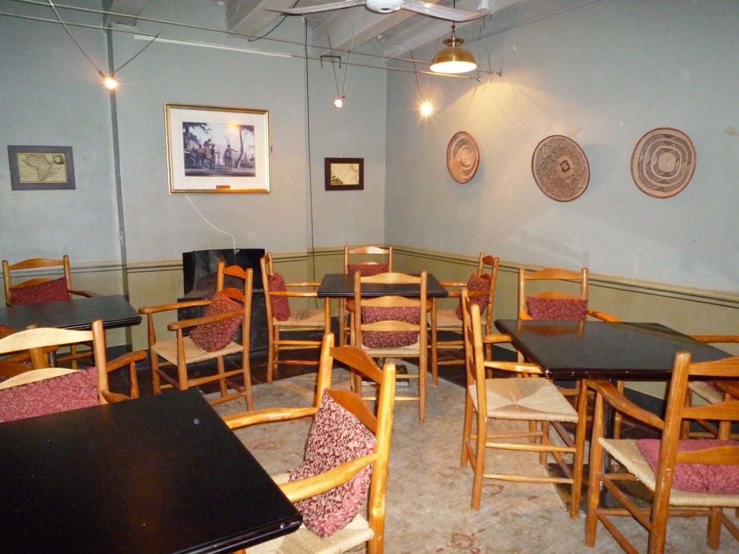 | 夕食は由緒あるお城の中のレストランでケープマレー料理でした。いくつもの部屋がありますが、食事をしていたのはわたく達のグループだけでした。素晴らしい雰囲気でした。 |
