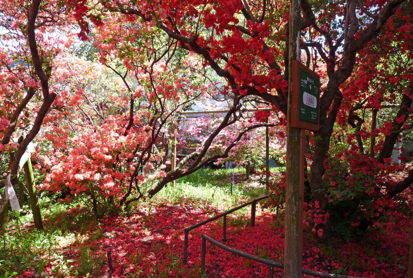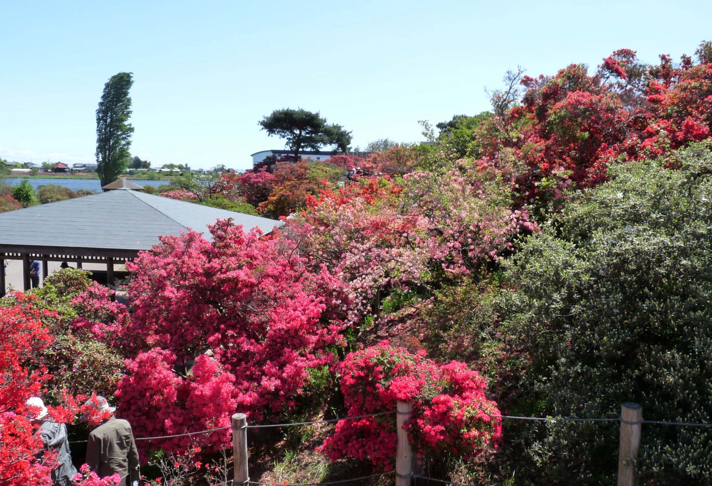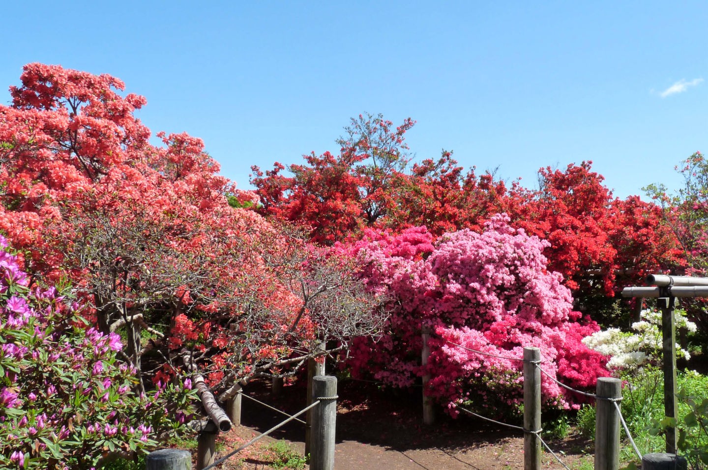 まさに満開でした。非常に広いのにもかかわらず、つつじの中の小路は、人でいっぱいでした。ツアーバスで来ている中高年の人たちがほとんどでした。 |