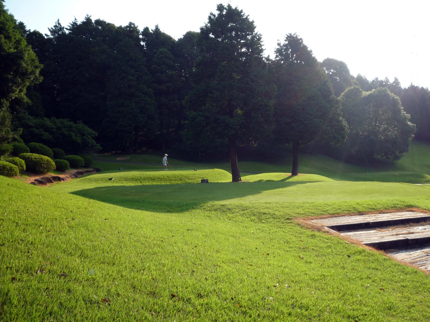 4時半のスタートのためには、3時半に起き、4時に家を出て、4時15分にゴルフ場に到着、ゴルフバックを自分でカートに乗せ、カートを自分で運転しスタートします。8月末頃には4時50分にならないと明るくならないので、OUTコース、INコースとも2,3組しかスタート出来ませんが、あまり人気がないようで、予約に問題はありませんでした。OUT,