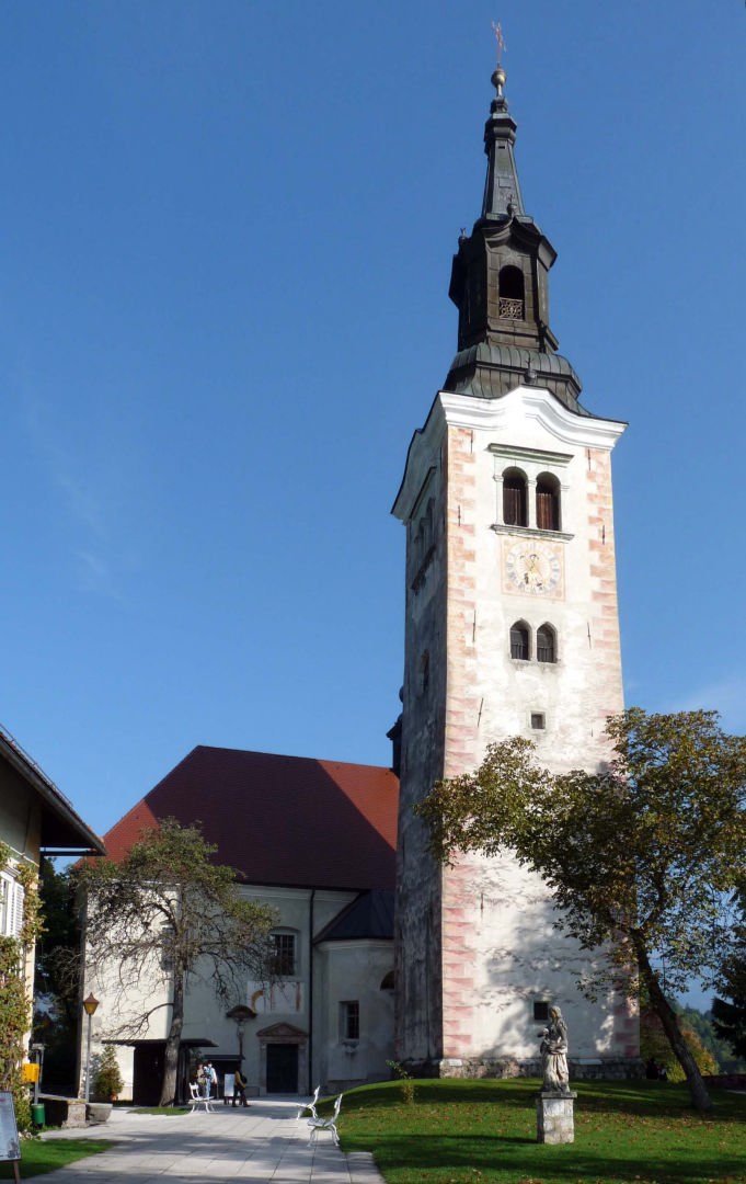 湖面から教会まで98もの階段を登るのですが、この教会の売り物は独特な結婚式で、新郎は新婦を抱き上げこの階段を登るのだそうです。結婚式が決まったら、新郎は体力増強に励み、新婦は減食に励むのだそうです。