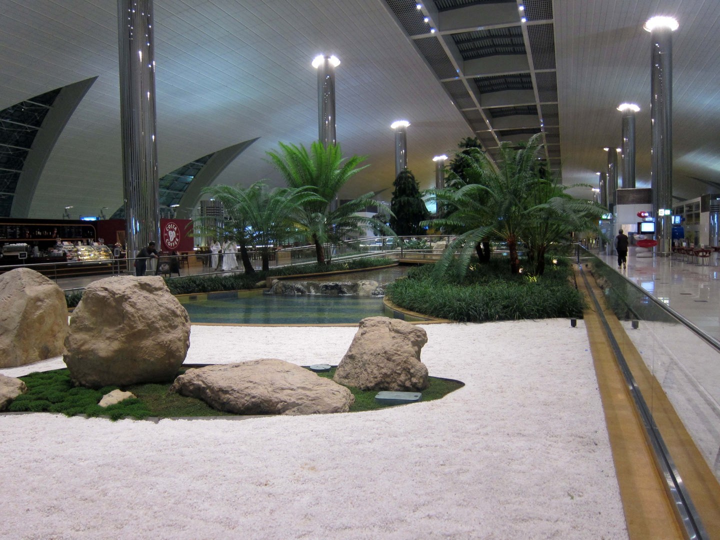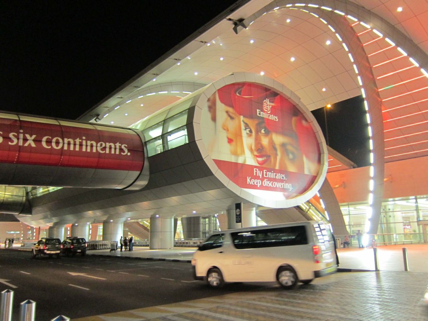 ドバイ空港はエミレーツ航空の本拠地であり、第三ターミナルはエミレーツ航空専用になっています。まだ新しいこともあって、広く清潔です。私たちはここで、7時15分発ダマスカス行きの便を待つため、約4時間の待ち時間がありますが、移動とセキュリティチェックなどに結構時間を取られ、時間はすぐに過ぎてしまいました。 |