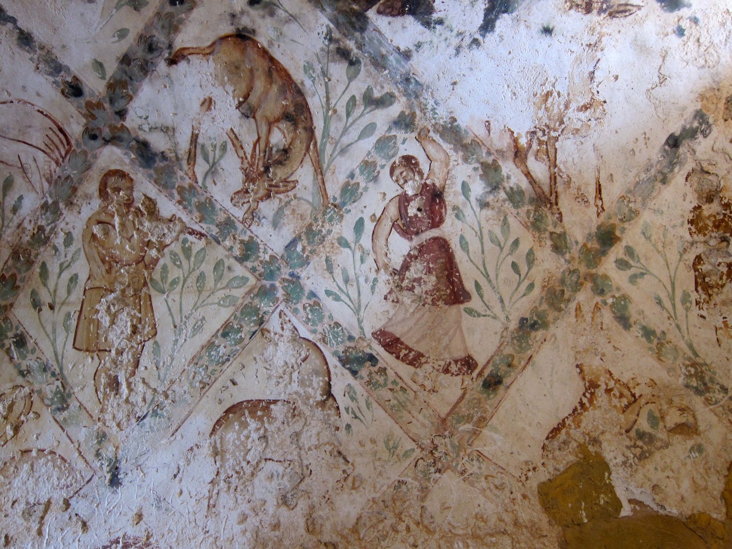 教会の後ろの山にはたくさんの洞窟があり、当時、迫害を受けたキリスト教徒が隠れ住んでいた住居跡だそうです。
