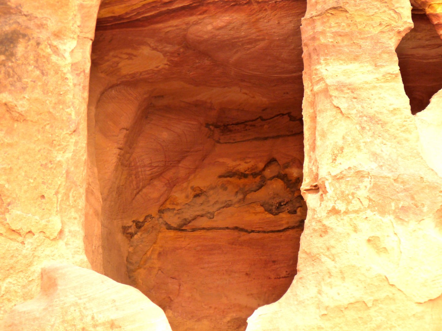 これらのお墓は一見住居のように見えますが、事実、ペトラが世界遺産に指定されるまで、この洞窟にはベドウィンが実際に住んでいたようです。 |