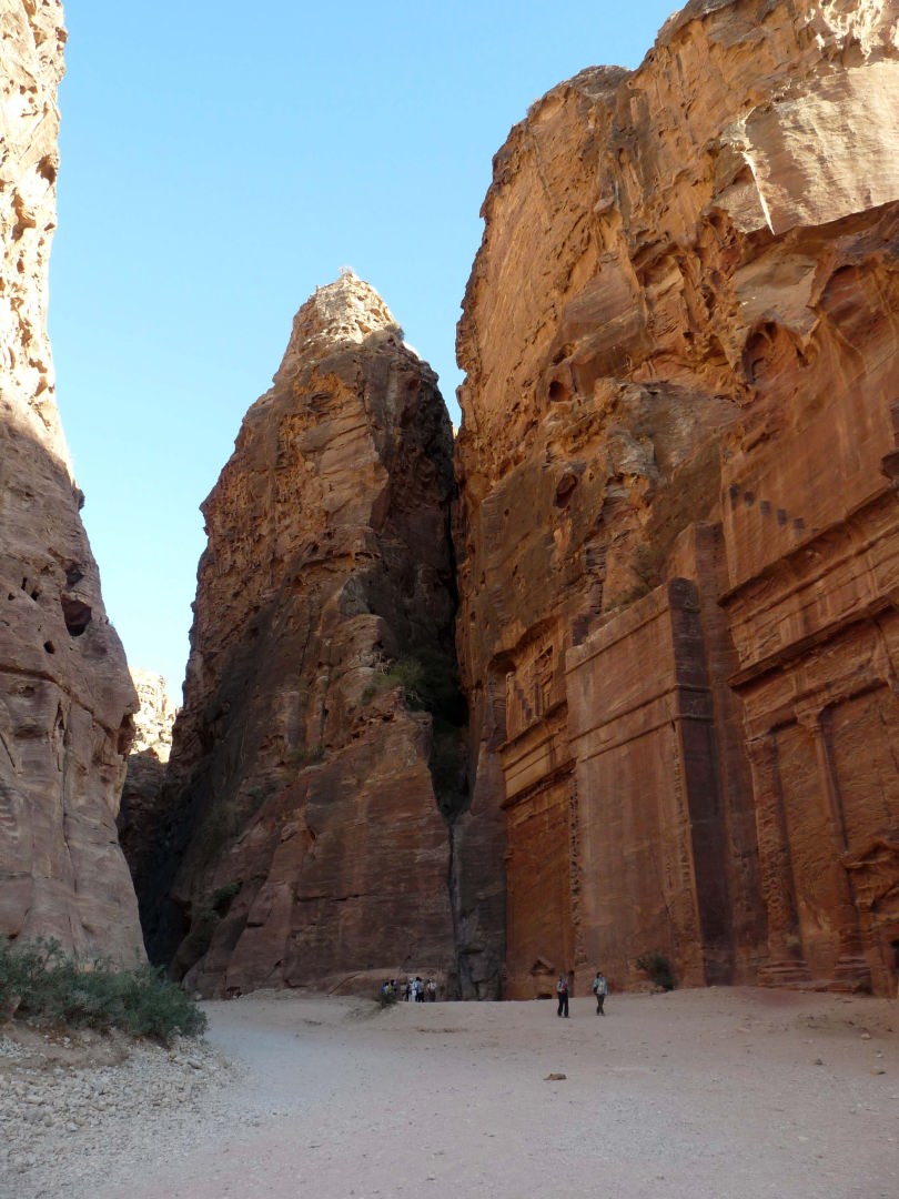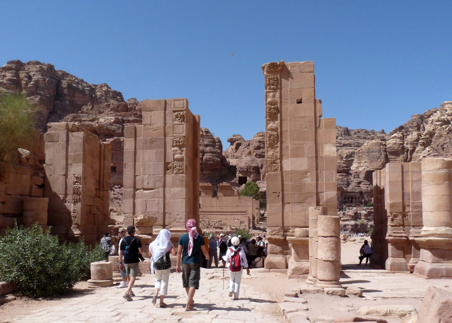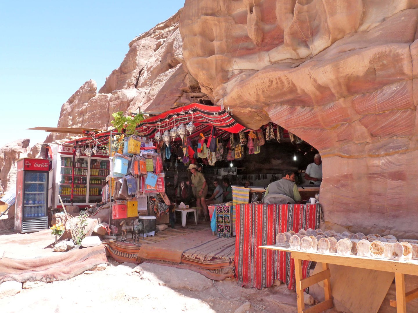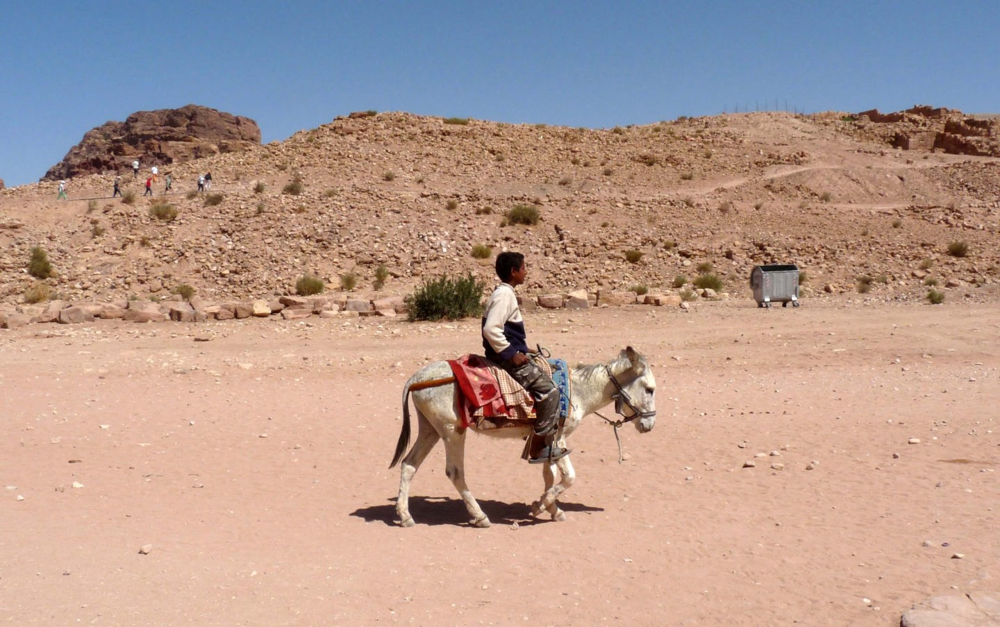 遺跡のほぼ奥にある博物館近くのレストランで昼食を取り、午後は各自、自由行動です。足の悪い人は、この近くから馬に乗ったりして帰ることも出来ます。私たちはここから階段が約900段もあると言われる、ナバタイ人の神殿、エド・ディルまで行くことにしました。階段の無いところは緩やかな登りになっており、エド・ディルまで通常の足で1時間ほどかかりるそうです。添乗員さんは一番足の遅い人の後ろになって、一緒に登って来ました。