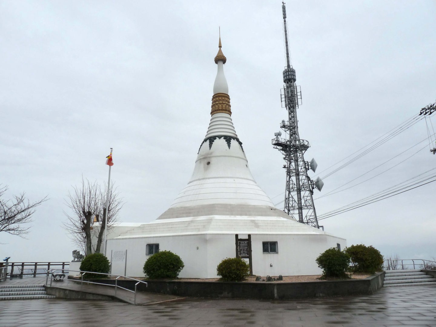 | 徳島市を見降ろす標高280mのところにある公園で、NHKやテレビ局、携帯電話会社などたくさんのアンテナが立っています。平和記念塔パゴダが作られていました。確かに晴れていれば見晴らしは相当良さそうです。 |