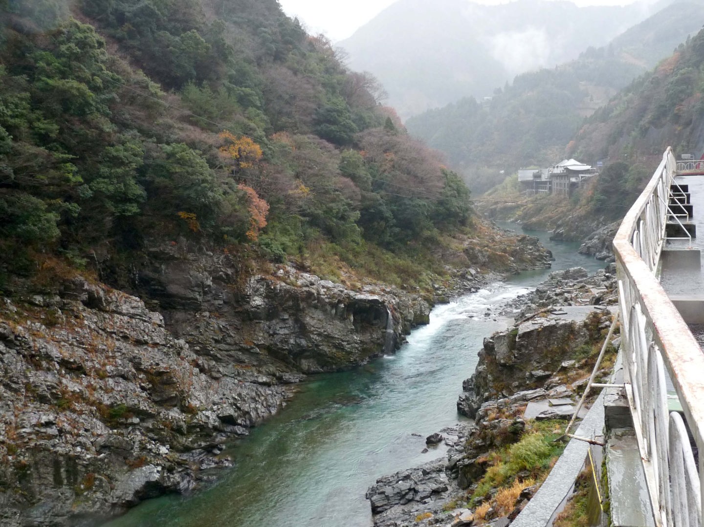 祖谷川には数えきれないほどたくさんのダムが作られています。大雨の時の鉄砲水から下流を守るためのように思われます。はたしてどの程度の役に立っているのか疑問も感じます。これだけのお金をかけて数多くの防護ダムを作るのなら、そのお金で、渓谷に住んでいる人たちの家を建て替えた方が安くつきそうな気もします。ただし、税金で個人の家を作るのは難しいのでしょう。