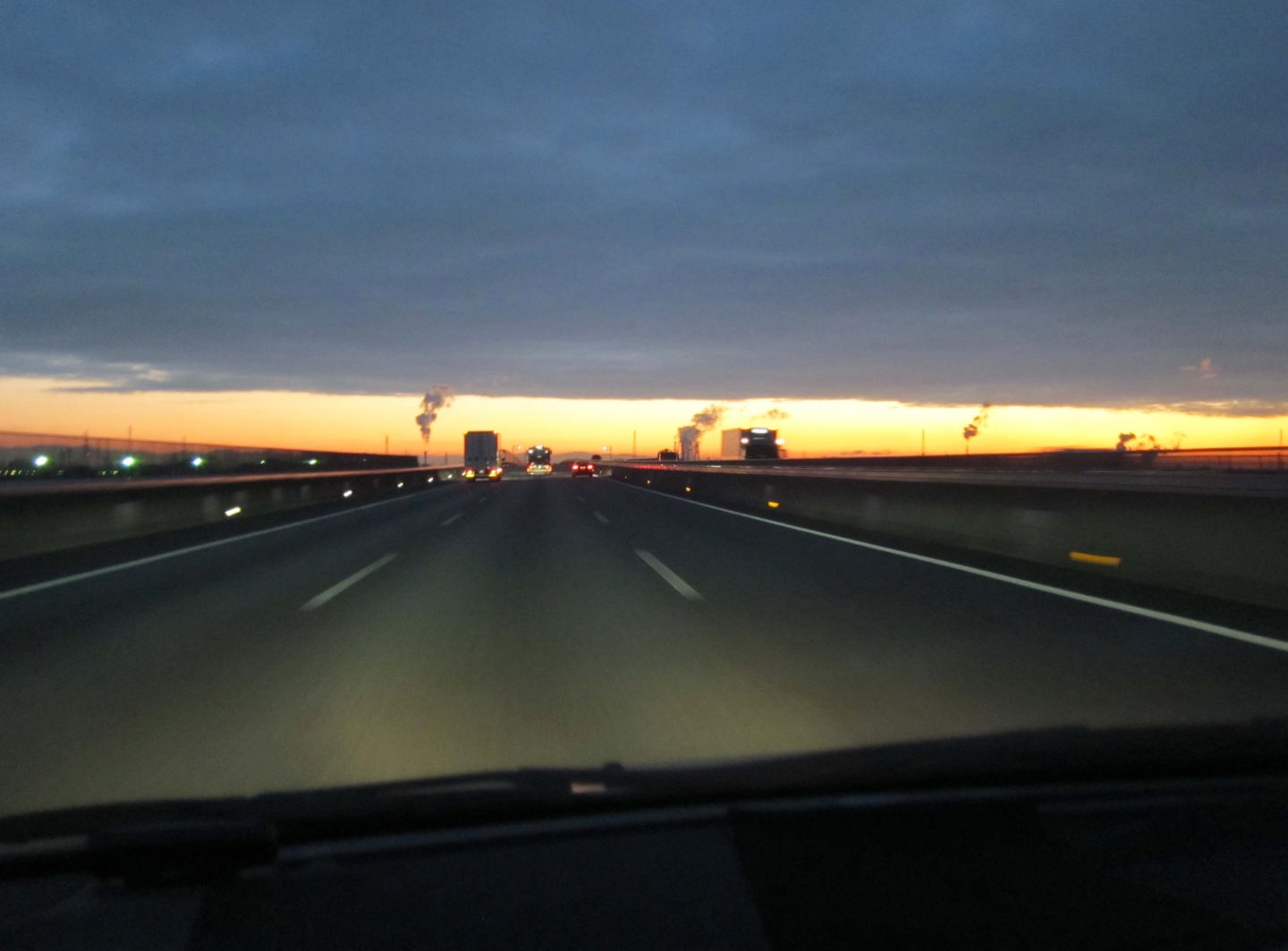 岡山のホテルは朝早く出発出来るよう、ビジネスホテルにしました。昨夜は8時ごろに寝たので、3時前に起床し、3時ちょうどにホテルを出ました。高速道路のパーキングは大きなトラックがたくさんと停まっていました。ジャストインタイムのための時間調整もあるのでしょうが、0時から4時の間に高速道路の一部でも走ると、走行場所には関係せず、高速道路料金が半額になる夜間割引の適用を考えているのかもしれません。私たちも4時前に入ったので夜間割引の恩恵を受け、予想していた料金の半額でした。夜間割引は初めての経験でしたが、このような割引制度は2011年3月末までだそうです。高速道路の割引制度は非常に複雑で、覚える気にもなれませんが、土日の混雑には閉口します。