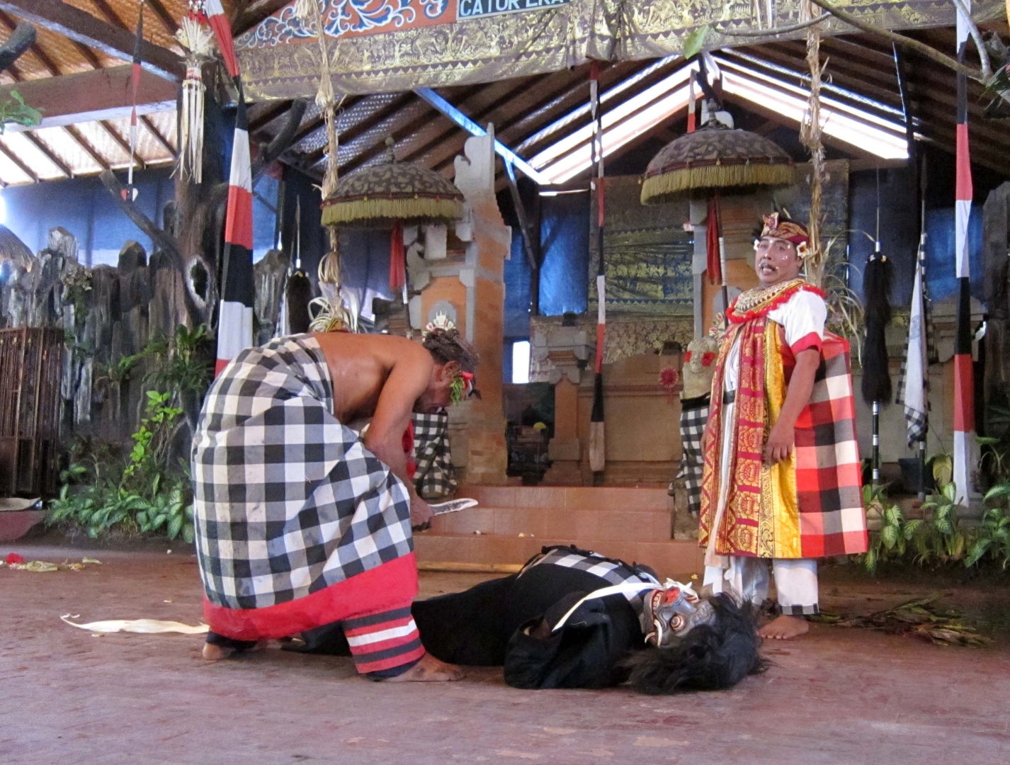 この踊りはバリ特有の楽器を使用して行われます。バリ島の人々は心の中に良い魂と悪い魂が何時も同時に存在していると信じており、この踊りは、人の心の中にある善と悪との戦いの物語です。バロンは良い魂を持つ動物で、ランダは悪い魂を持つ動物です。
