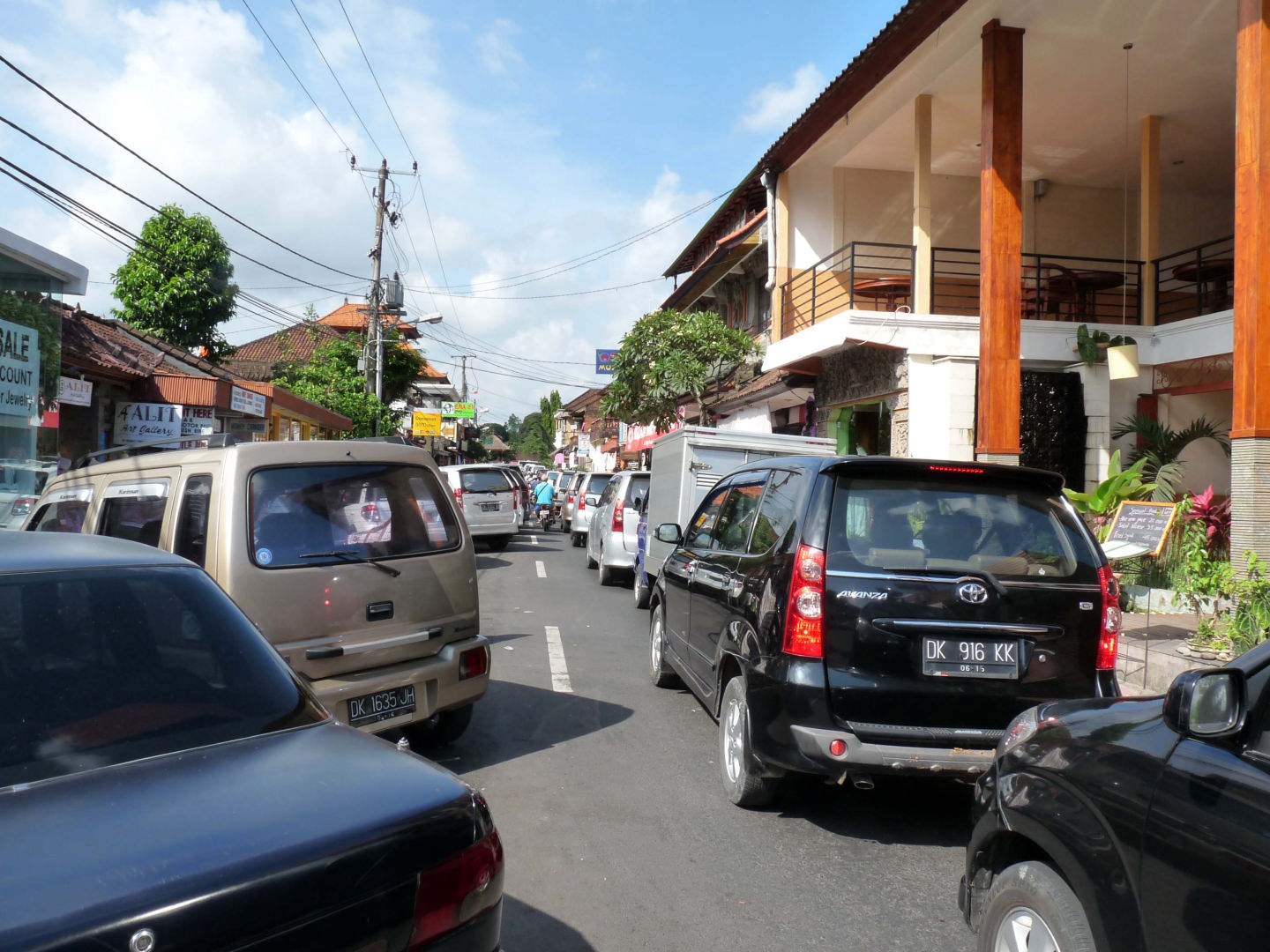 バリ島の古都で、王宮など、昔をしのばせる町ですが、とにかく大変の混雑には驚かされます。道路は車でいっぱいで動きがとれません。 約1時間半、適当に歩いてみました。たくさんの観光客が、町をぶらぶら歩いています。市場も大変な混雑でした。