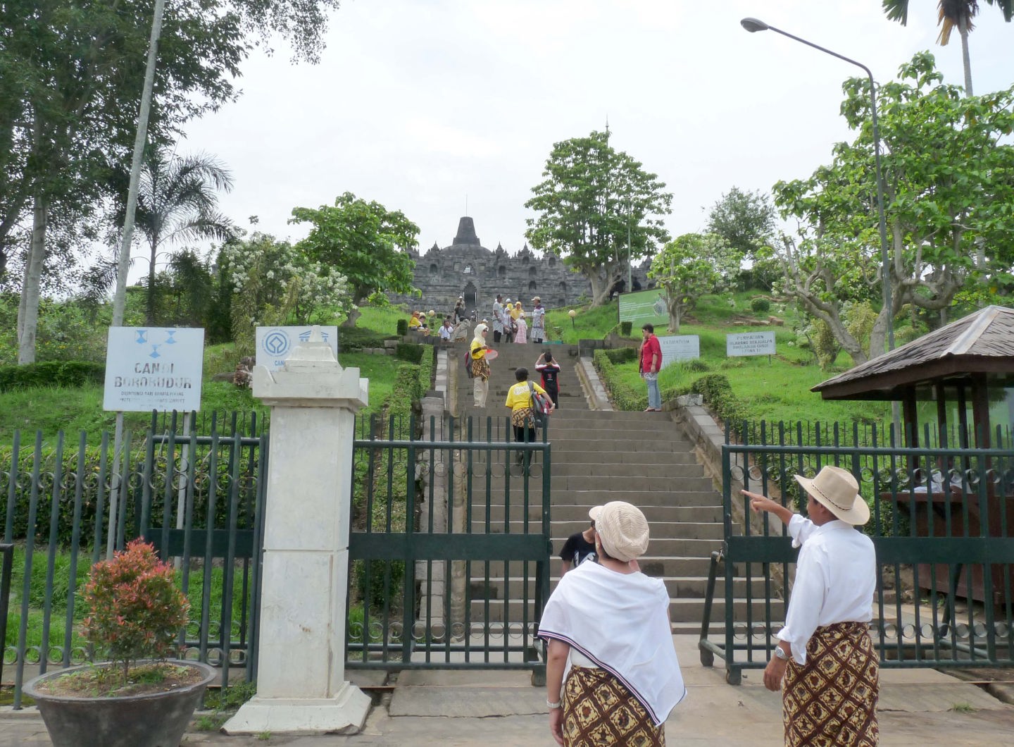 今日はジャワ島中部にある二つの世界遺産の観光です。バリ島を朝6時発の飛行機で発ち、約1時間でジョグジャカルタに到着しました。
