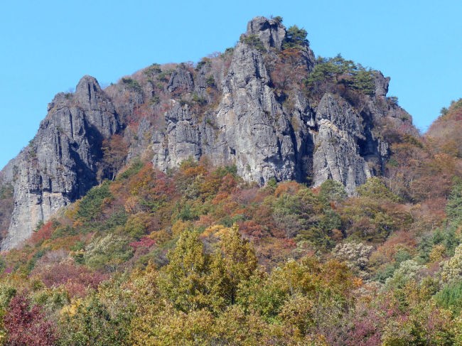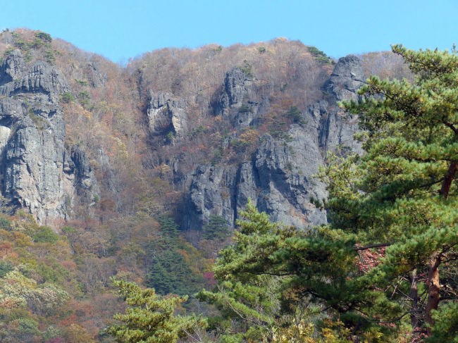 まさに断崖絶壁の山で、紅葉もまだ少し残っていました。