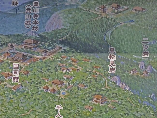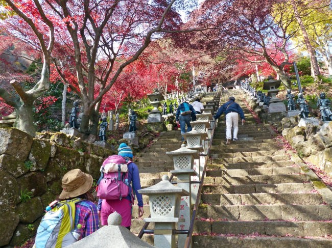 下から見ると険しい山に見えますが、山の上には、昔お寺が作られ、その史跡を歩くハイキング道路が作られていました。