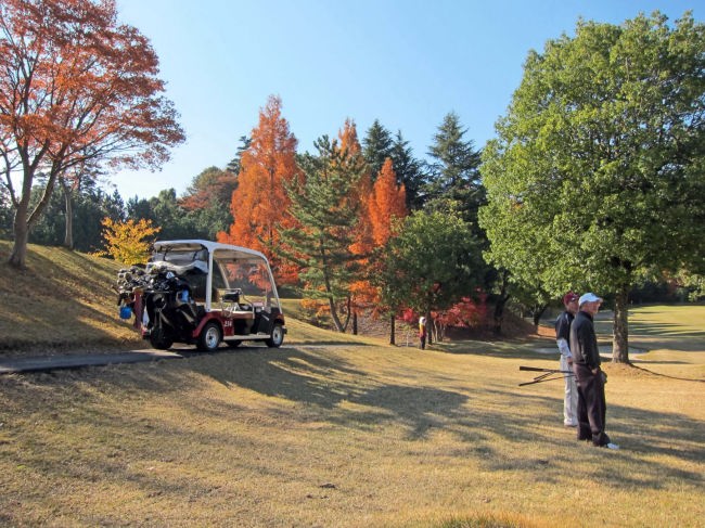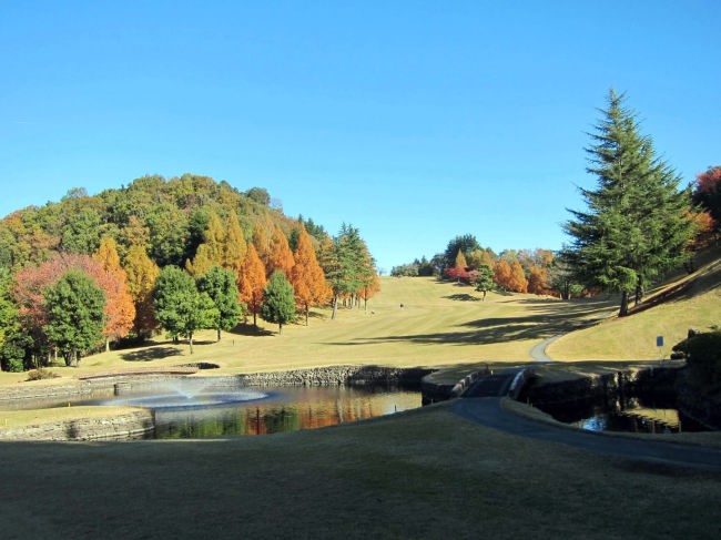 柏市近くのゴルフ場です。元会社のOBのゴルフコンペです。もみじの木はそれほどありませんでしたが、芝の紅葉がきれいでした。