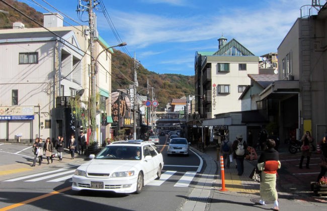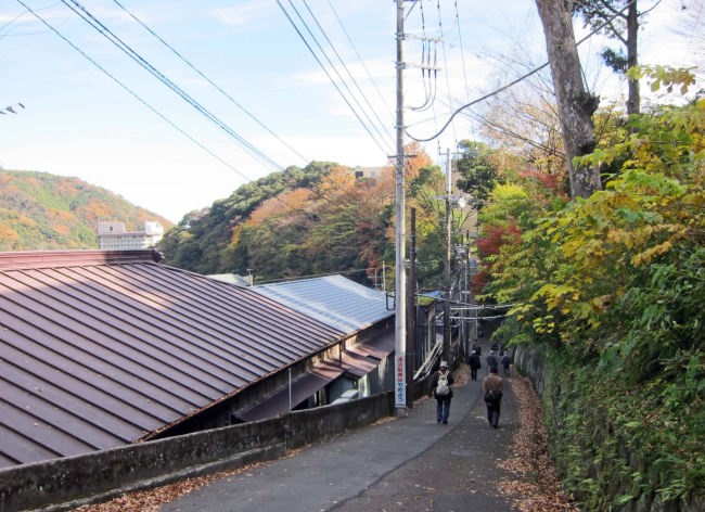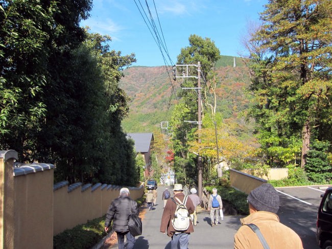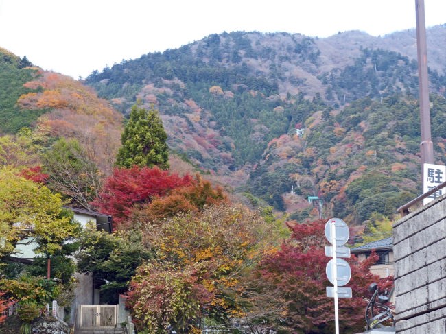通常はホテルから箱根湯本駅までバスを利用するのですが、今回は天気も良く、紅葉も素晴らしかったので、全員、歩いて駅に向かいました。日曜日のため、駅周辺は大変な混雑でした。