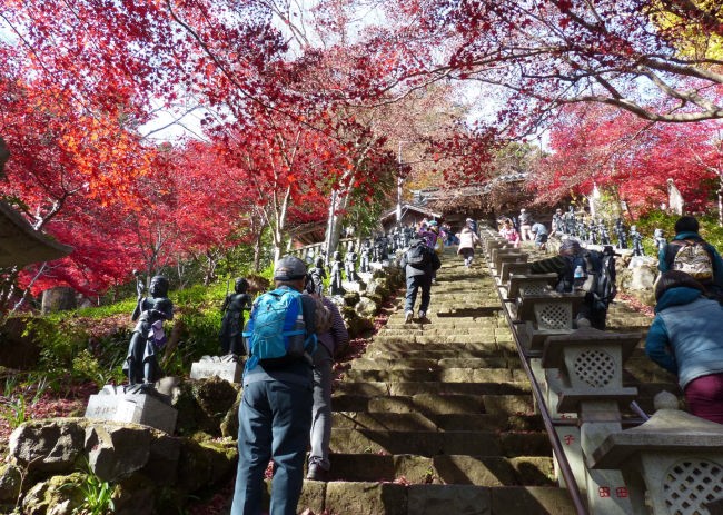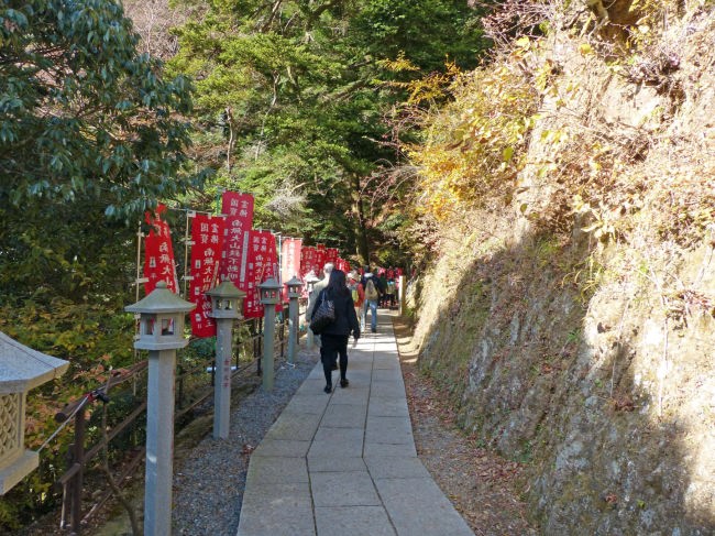 すでに満車で停められなかった駐車場からケーブルカーの乗り場まで、約400段弱の階段を登ります。ほぼ15分と書いてありました。 |