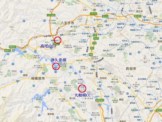 そのため、せっかくなので、高尾山の紅葉を見ようと出かけたのですが、ケーブルカーの乗り場周辺の駐車場はどこも満車で登るのをあきらめ、近くの津久井湖を見て、大相模CCに向かいました。