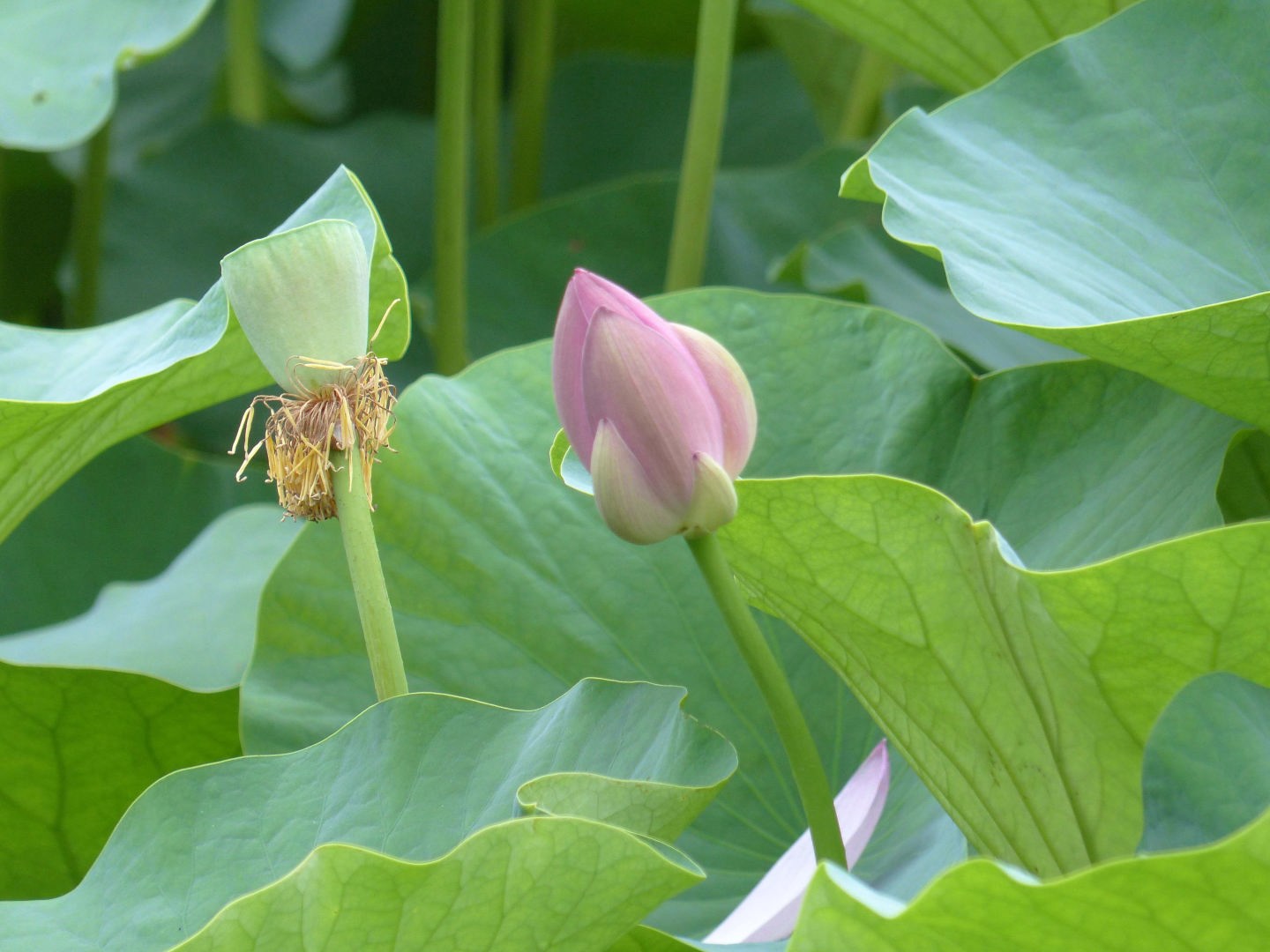 ハスの花はわずか4日間で散ってしまい、桜よりも短いようです。花が散って、種が出来るまで約1ヶ月かかるようです。