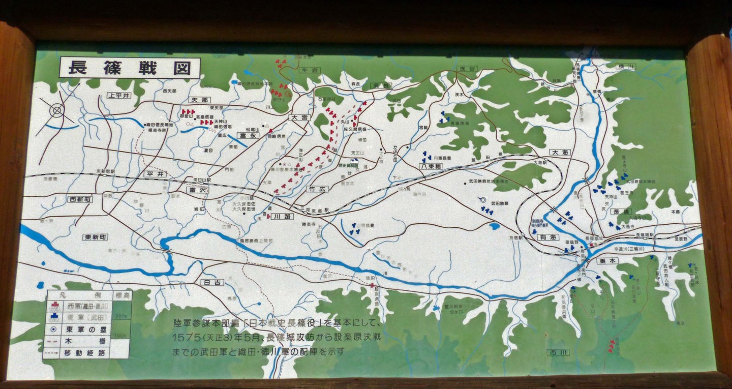 その時の信長軍鉄砲隊の三段撃ちはよく知られていますが、この戦いは鉄砲の威力を示した初めての戦いとして良く語られています。 |