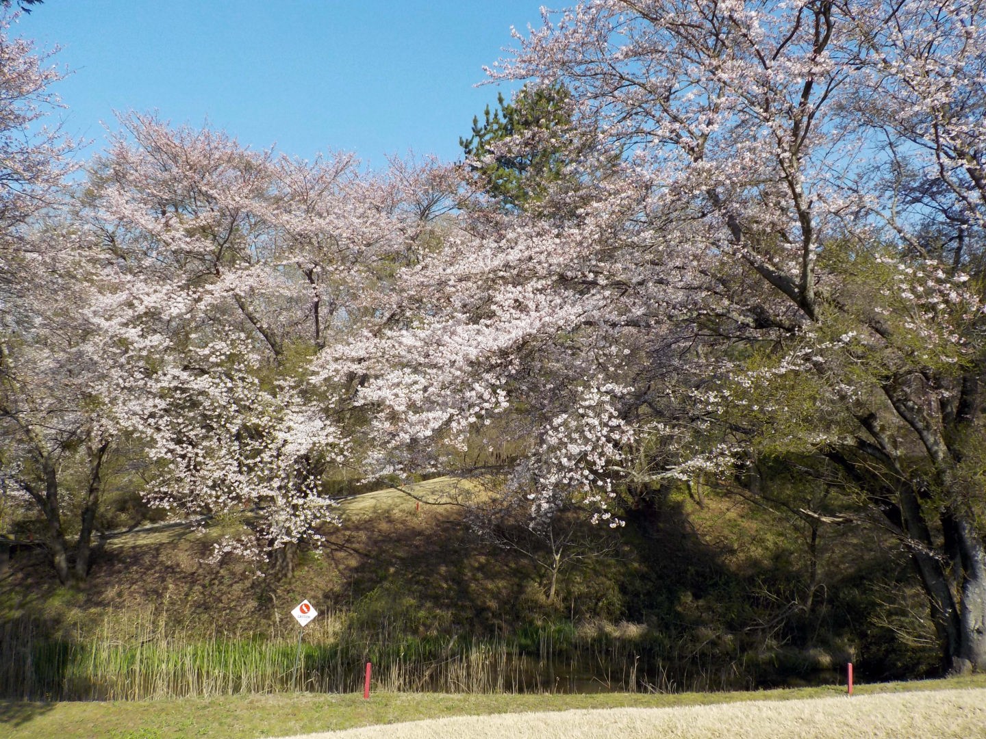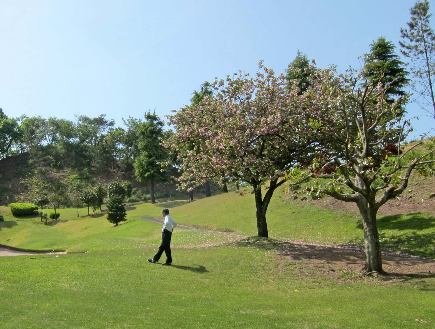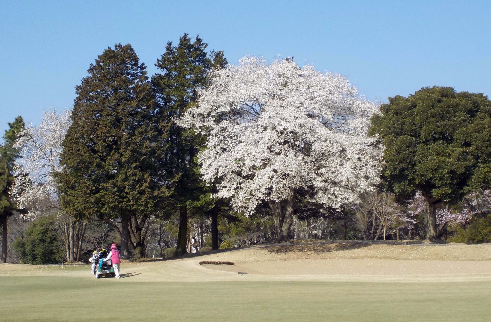 桜やこぶしが満開の下でのプレーでした。年度末の3月31日のためか、コースは本当にガラガラで、前も後ろにもプレーヤーが居ませんでした。そのため、18ホールを連続して回りました。メンバーの方が一人入り、1組3人のプレーになりました